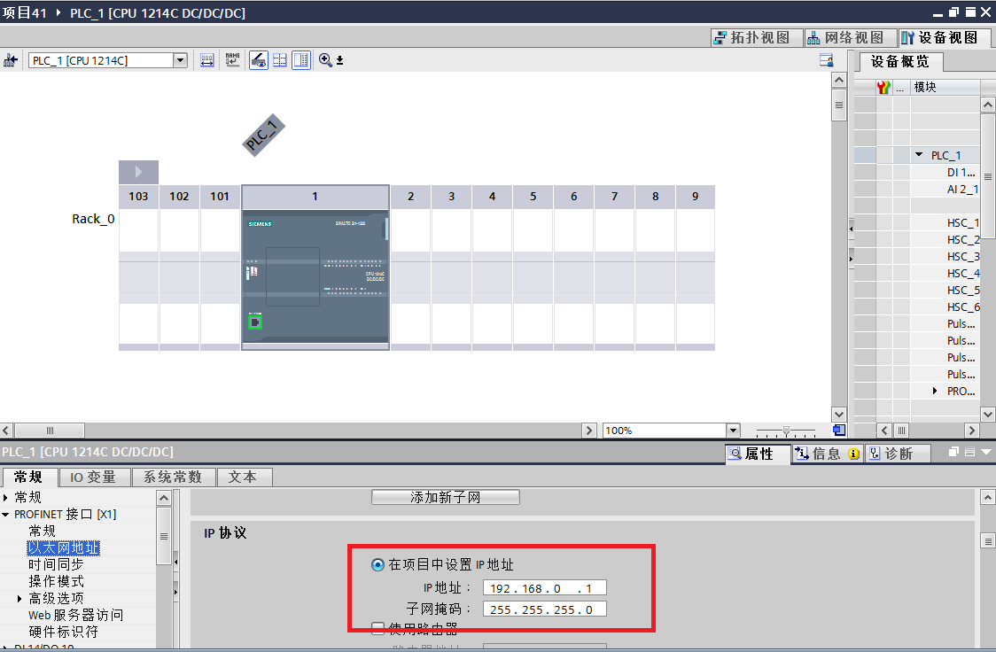 ②點擊添加新子網,IP地址要和CPU地址一致,這里1200地址是192.168.0.1