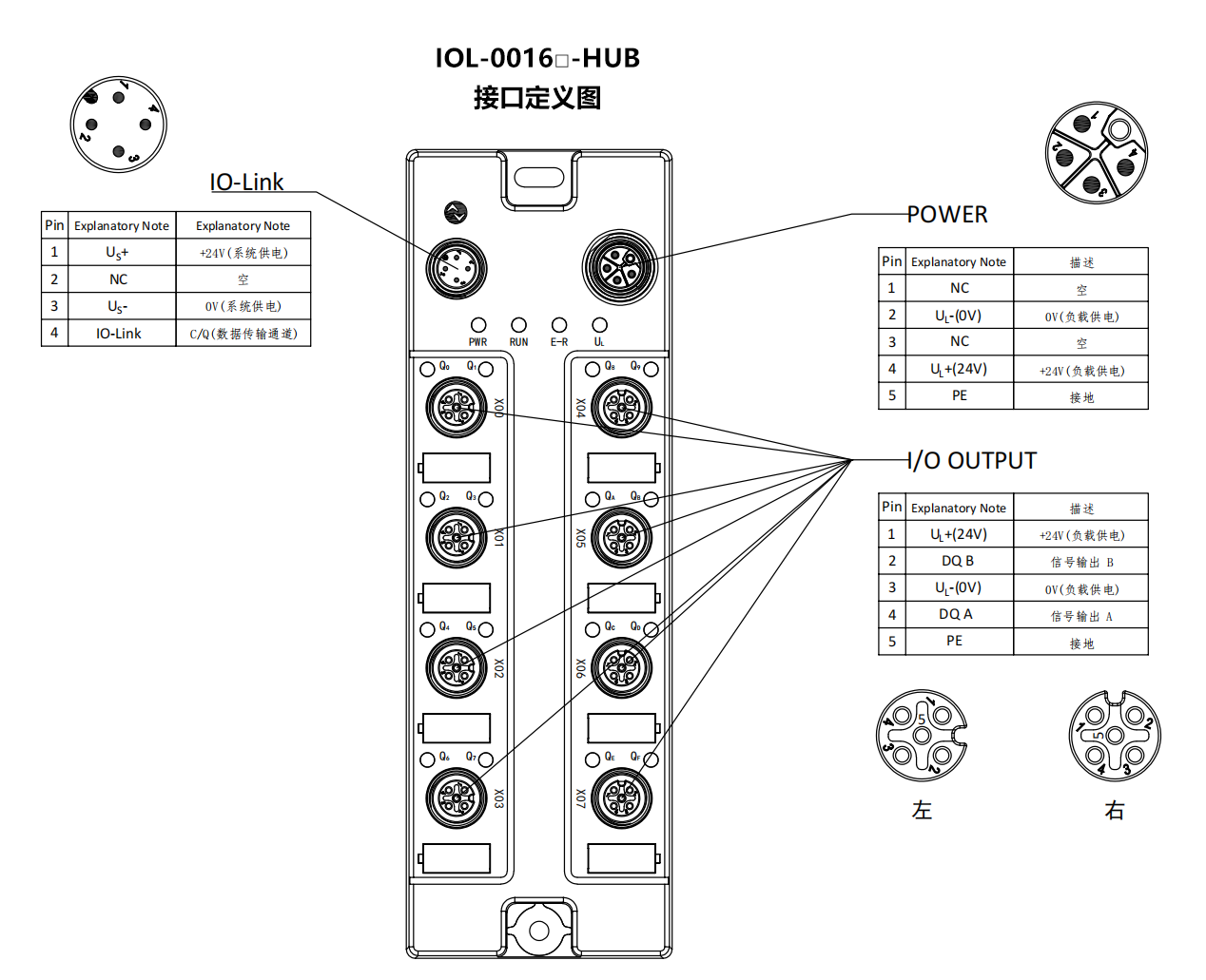 信號接口:8×M12,A-Code,5P孔
