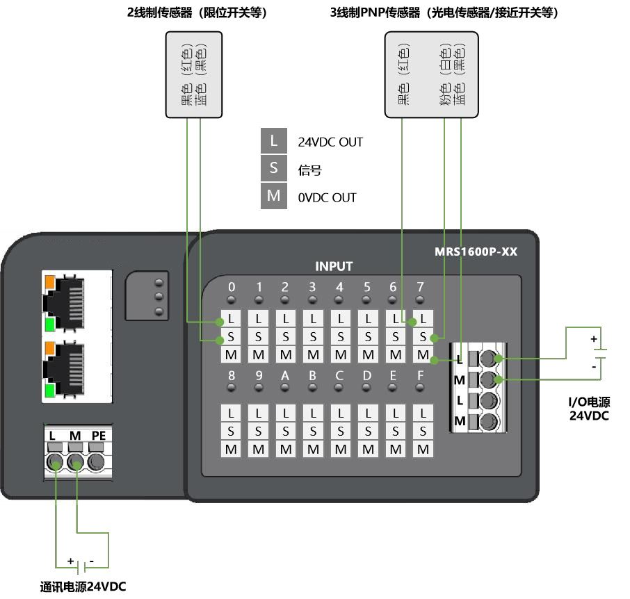 電源接口:模塊供電:3P歐式彈簧端子;負載供電:4P歐式彈簧端子