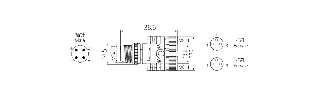 規(guī)格描述:Y型分支器,M12轉(zhuǎn)M8,A-Code